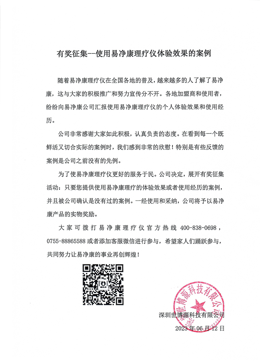 有獎(jiǎng)?wù)骷?-使用易凈康理療儀體驗(yàn)效果的案例