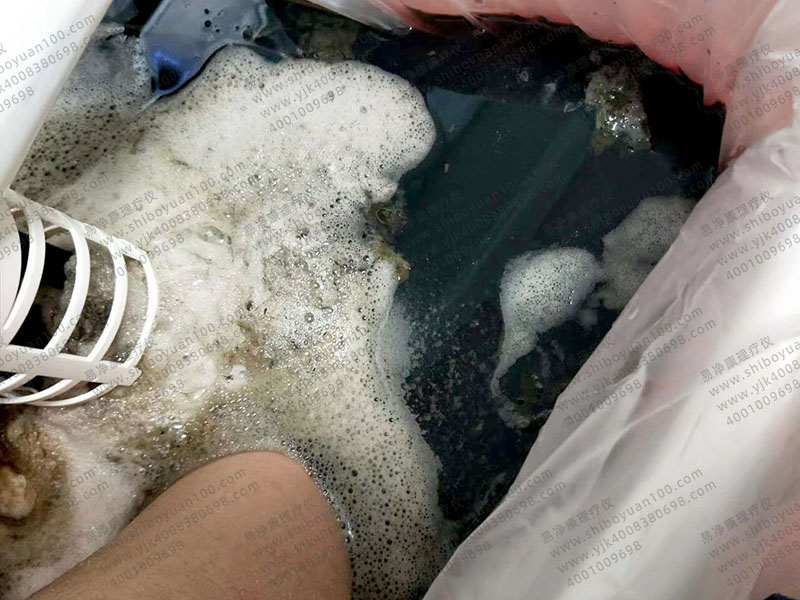 這是因?yàn)橐變艨道懑焹x在工作時(shí)產(chǎn)生了大量的氫離子,通過氫離子透皮吸收的原理,進(jìn)入血管和血液中;用正、負(fù)離子異性相吸的作用,將化驗(yàn)報(bào)告上看到的帶+號的離子(含有的致病因子)通過細(xì)胞膜的水通道吸附出來排在水里。我們所看到的白色泡沫就是呼吸系統(tǒng)中的炎性因子被排出體外的現(xiàn)象??吹竭@些白色泡沫時(shí),就知道是呼吸系統(tǒng)出現(xiàn)了問題。但是每個(gè)人的身體狀況不同,這些白色泡沫的狀態(tài)也是各有不同。有的是呼吸系統(tǒng)出現(xiàn)了炎癥;有的還會(huì)伴隨著皮膚問題;呼吸道的感染怎么能影響到皮膚呢?在中醫(yī)理論里:肺朝百脈,在體合皮,其華在毛。就是說,肺部出現(xiàn)了問題的人,也會(huì)伴隨著皮膚問題產(chǎn)生。這也就是泡腳時(shí)看到皮膚病患者也會(huì)有白色泡沫現(xiàn)象的原因。