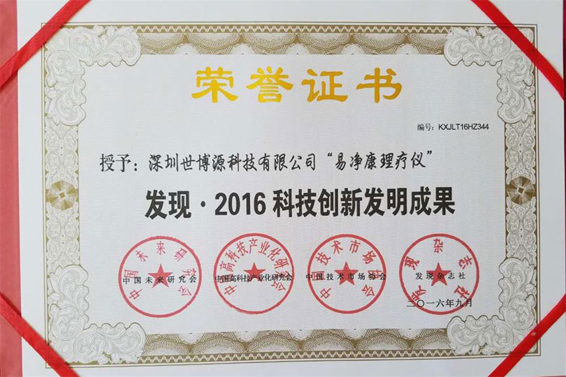 世博源科技“易凈康理療儀”獲“發(fā)現(xiàn)·2016科技創(chuàng)新發(fā)明成果”榮譽獎項